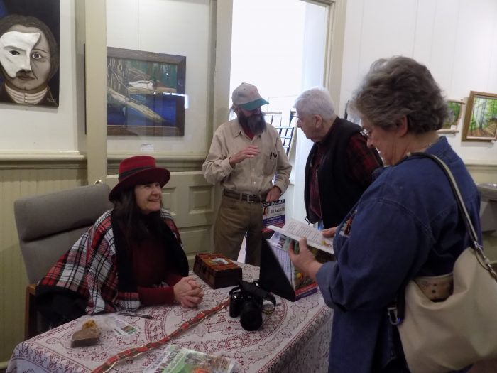 Paris, Tenn.—Paris Artist Christi Wilkins was at work painting another canvas during today’s Christmas Bazaar at the Lee Academy for the Arts. In other photo, Artist John Monroe and Author Kathryn Lacombe chat with some of the people on hand for the event. Baked goods and homemade soups were available for lunch. (Shannon McFarlin photos).