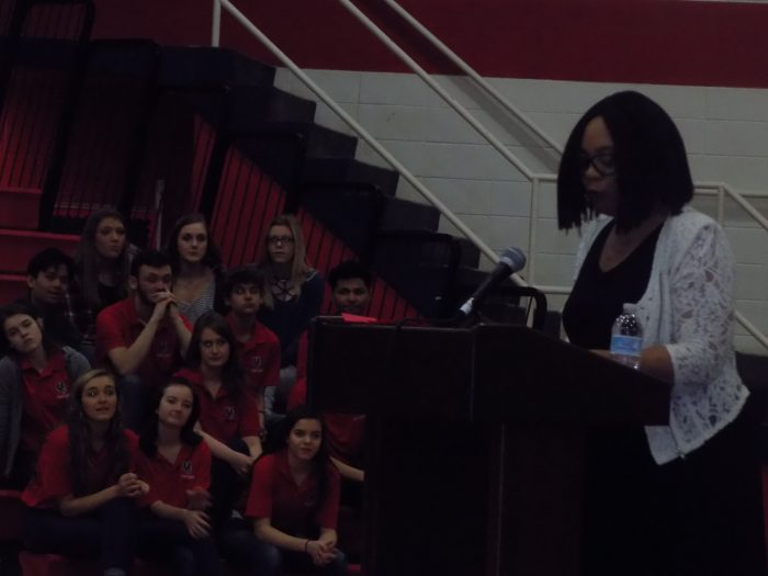 Paris, Tenn.—Former Henry County High School History Teacher Nashedra Strong-Clay gave a rousing speech and The Madrigals sang powerful musical numbers at this morning’s Black History Month program at HCHS—and both were given standing ovations.