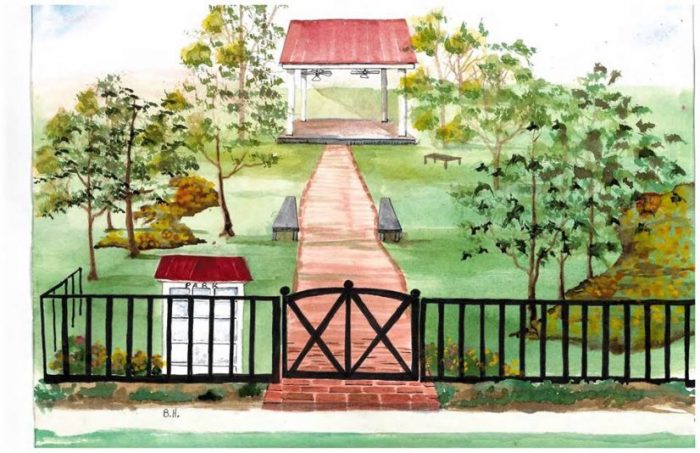 Plans are for the park to include bricked walk ways, a signboard, trees, and benches.