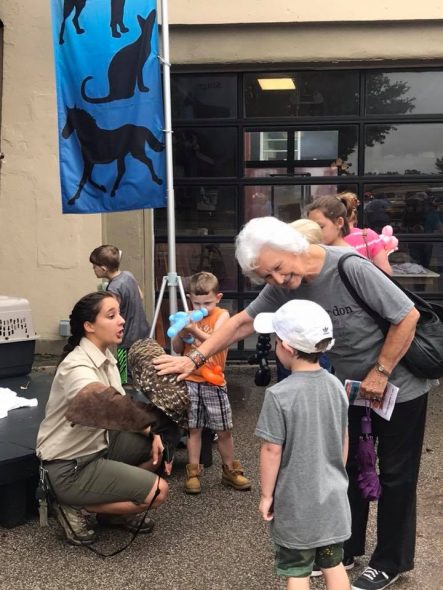 Huntingdon, Tenn.—Rain storms cancelled several area events Saturday, but not the Huntingdon Heritage Day Festival. Activities including live music, pottery exhibitions, a balloon artist, craft making and face painting, food trucks, and the Paris Landing Birds of Prey demonstrations by Amy O’Brien. A good crowd was on hand for the festivities which were punctuated by on and off rain. Top photo shows hardy customers lining up for Rolling Snow’s creations, despite the rain (photo by Rolling Snow), while Amy O’Brien shows a Barred Owl from Paris Landing State Park (photo by Lori Nolen).