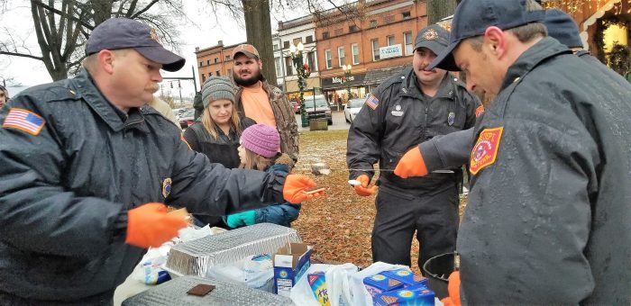 At the Christmas Festival earlier in the afternoon, the Paris Fire Department made their world-famous s’mores and Santa and his gang visited with youngsters.