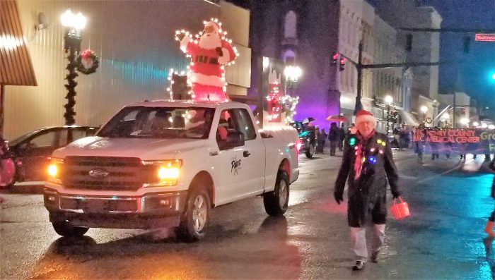 Paris, Tenn.–It was chilly and with a drizzling rain, but that didn’t dampen the spirits of those who came out for the Holly Jolly Electric Parade Saturday night in downtown Paris. The steady drizzle did keep the usual crowds from attendance at both the parade and the Christmas Festival which preceded it, which was minus some of the activities that had been planned.