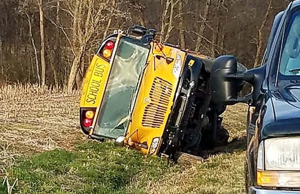 Paris, Tenn.—Four students were transported to the Henry Co. Medical Center after a county school bus landed on its side early this morning while transporting students to Henry and Grove Schools.