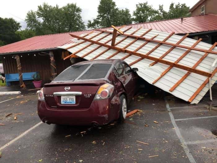 The Catfish restaurant was hit with debris from a nearby building and several customer vehicles were damaged. Hayden noted that a local man, Cliff Guthrie drove two couples from Paducah home last night after their cars were totaled when the restaurant was hit. They were customers and inside eating when the storm hit.