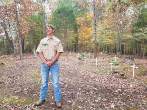 Paris, Tenn.–Thanks to the initiative of Eagle Scout Gage Starks, white crosses have now been placed at all the formerly unmarked graves at the former County Home Cemetery.