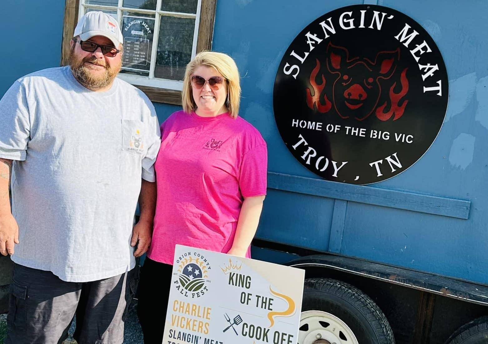 Coming in HOT off our Obion County Fall Fest Cook Off last year is 2023 “KING” of the Cook Off Charlie Vickers and his beautiful wife Kayla of the BEST BBQ Shack in Troy, Slangin’ Meat !! ![]()