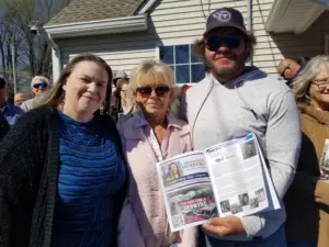 Top photo: Vicki Snyder reacts as her husband, Mark, hugs her; bottom photos: members of Wyatt Owens family with the book dedication; ribbon-cutting at the headquarters. Photos by Shannon McFarlin.