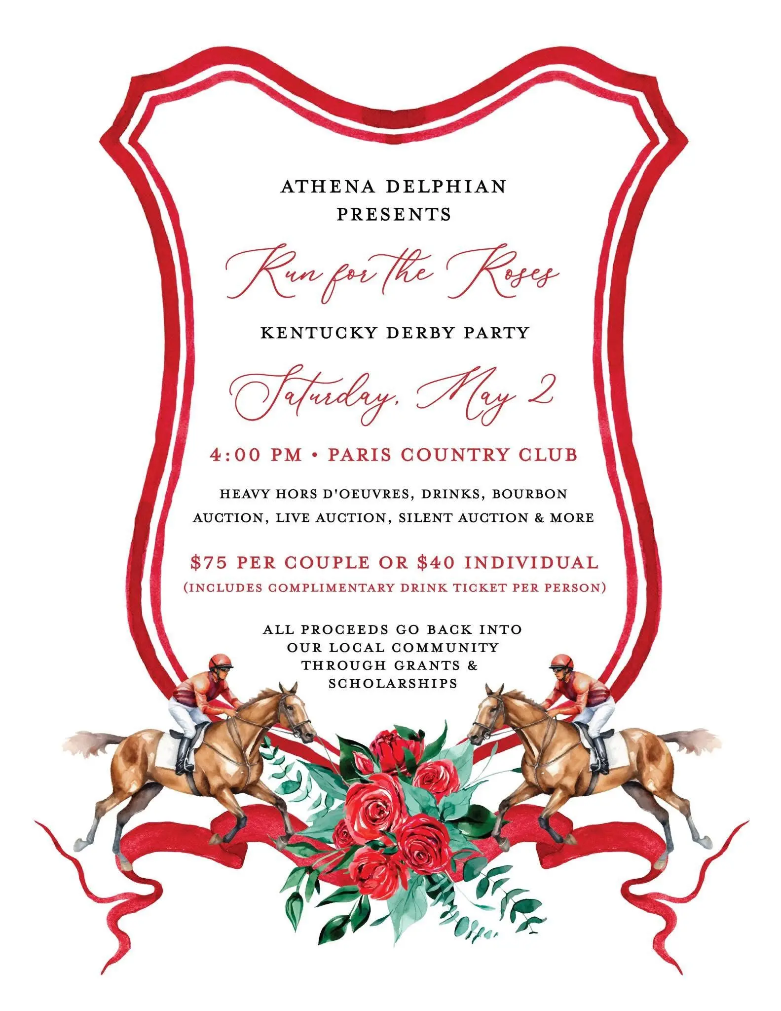 The annual Run for the Roses Derby Party is almost here! The annual event is hosted by the Athena Delphian Club of Paris. It will be held at 4 p.m. Saturday, May 2, at the Paris Country Club.