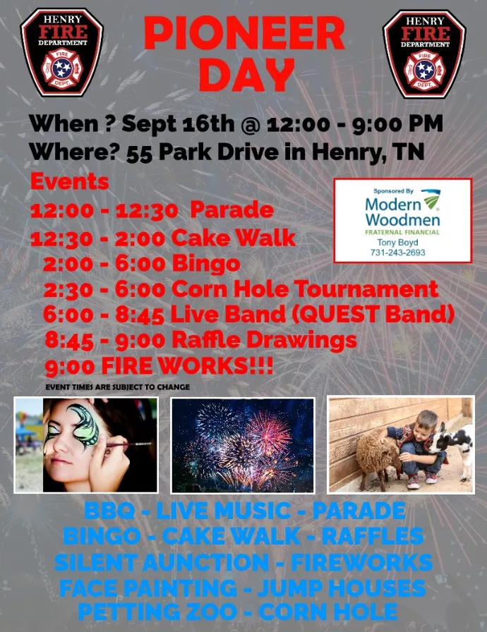 of year again! We’re changing a few things up this so we ask that you please keep an eye on the Henry Fire Department page. The biggest most important change this year is Pioneer Day will not start UNTIL 12:00 PM.