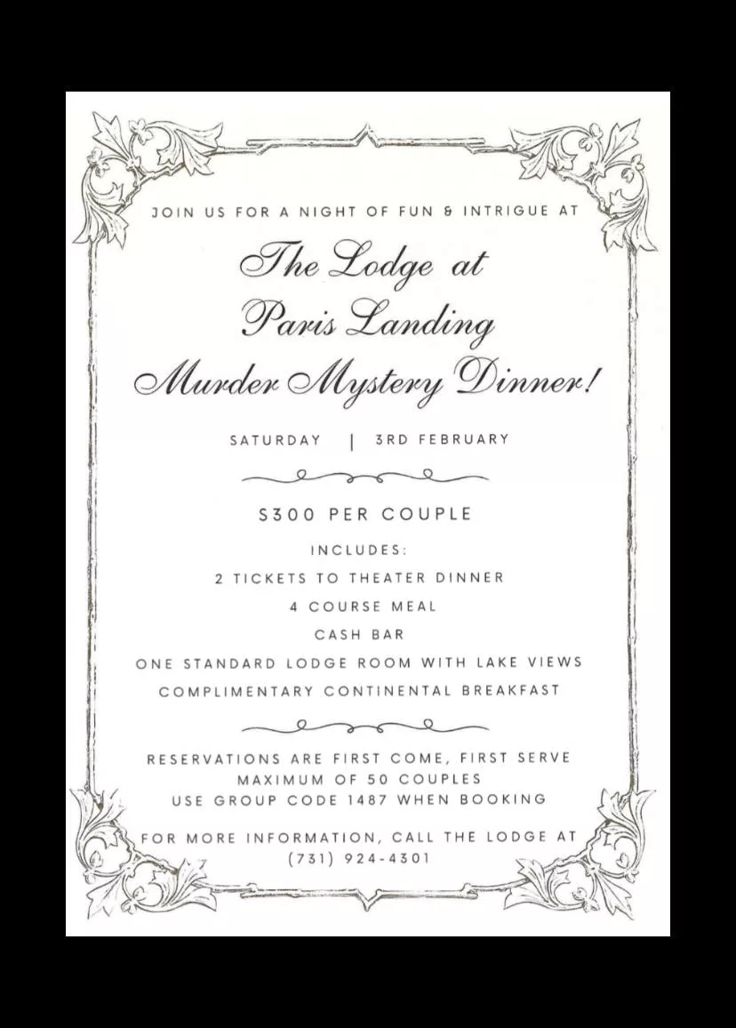 The dinner detective is coming to The Lodge at Paris Landing!
