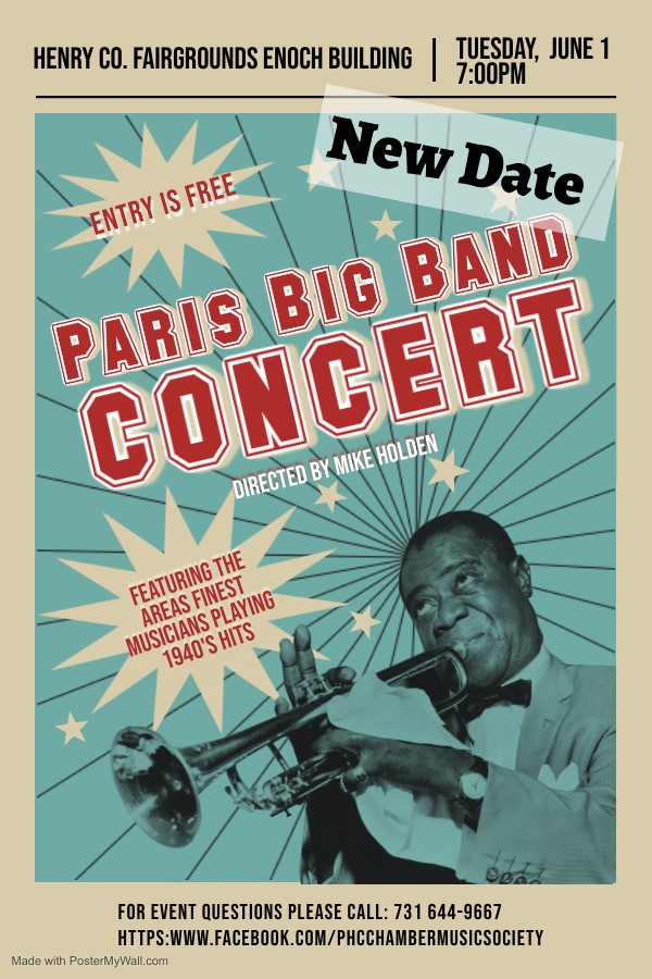 Paris, Tenn.–The Paris Big Band Concert has been rescheduled with a new date and new venue.