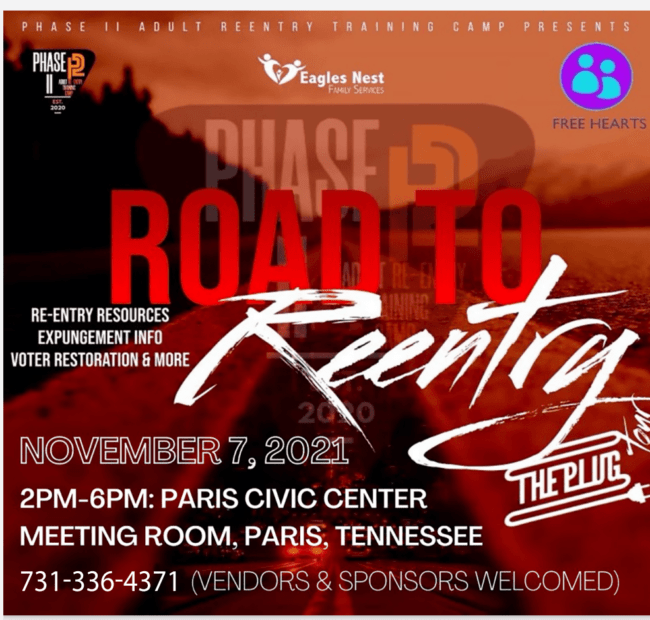 Paris, Tenn.–Are you or someone you know having difficulties getting a job or apartment because of a criminal record? Do you have expungement rights? Have you lost your voting rights because of a criminal history? Would you like to find out how to turn it all around? Then please join Patriots Community Kitchen as they sponsor The Phase II Re-Entry Event Sunday, November 7th from 2-6 pm in the Paris Civic Center Meeting Room. Let this be your first step in securing your future. Past mistakes don’t have to ruin your future.